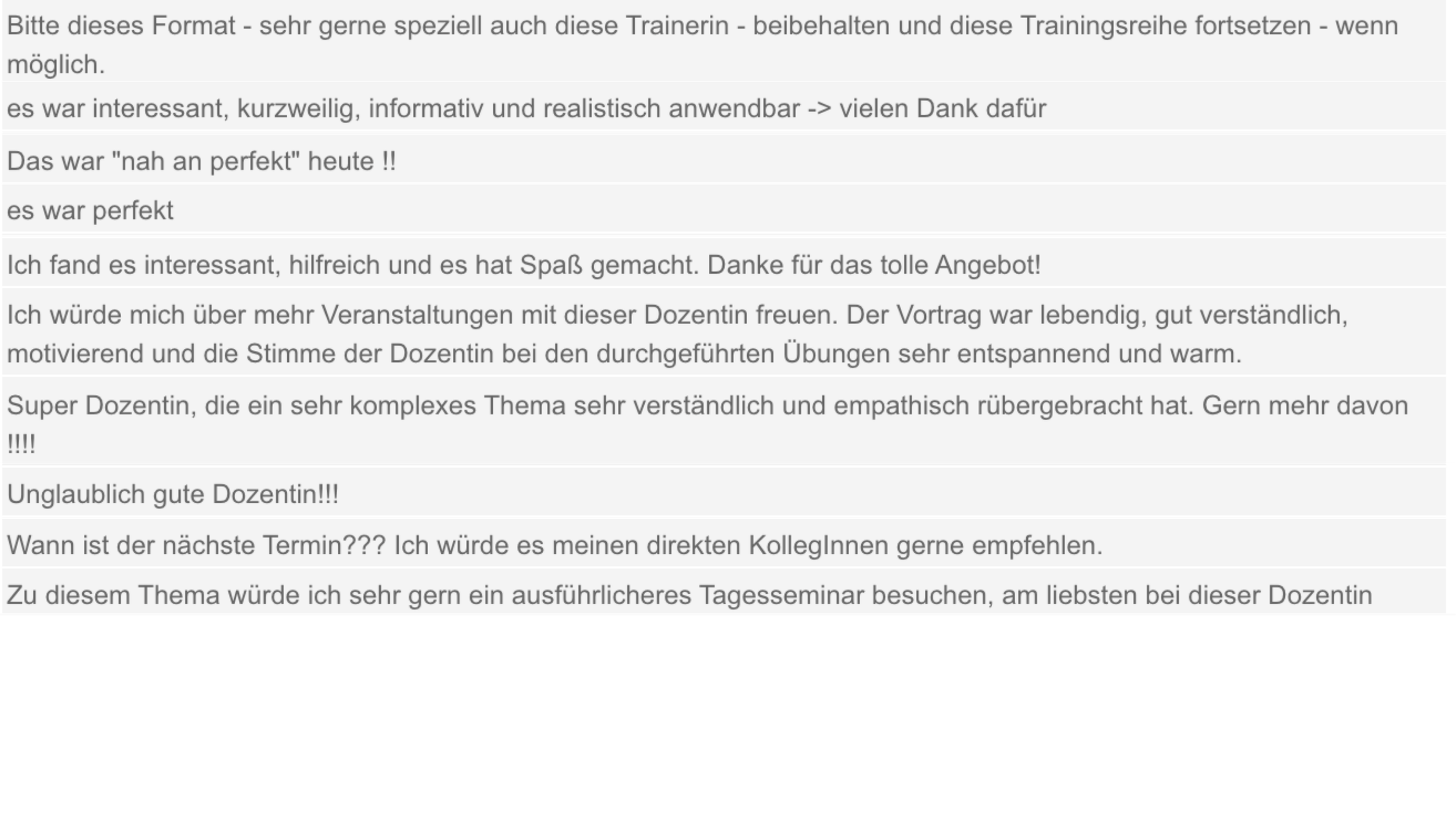 Meine Workshops sind interaktiv und praktisch, dabei aber natürlich durchzogen von spannendem Wissen zu neuropsychologischen Erkenntnissen. Es wird gemeinsam reflektiert, visualisiert und transformiert. Mein Wunsch für euch in jedem Workshop ist, dass sich schon während unserer gemeinsamen Zeit etwas verändert – und, dass ihr etwas ganz Konkretes mitnehmt, das ihr danach umsetzen könnt.